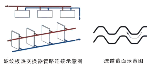 波紋板熱交換器具有合理的空間結(jié)構(gòu),良好的傳熱效率和排凝效果,板塊化單元結(jié)構(gòu),串并聯(lián)組合簡捷方便,運行性能可靠,是當今熱傳遞領(lǐng)域中一種新穎傳熱單元。